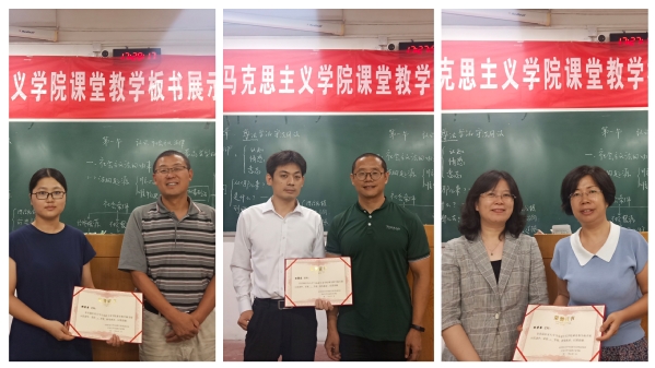 7月2日,马克思主义学院首届课堂教学板书展示活动在校本部北院主楼B147教室成功举行。马克思主义学院党委书记李小芹、院长陈怀平出席活动,人文学院副院长侯长生、理学院副院长商泽进、外语学院副院长张秀见应邀担任评委,马克思主义学院教师代表观摩了展示活动,活动由副院长王立洲主持。