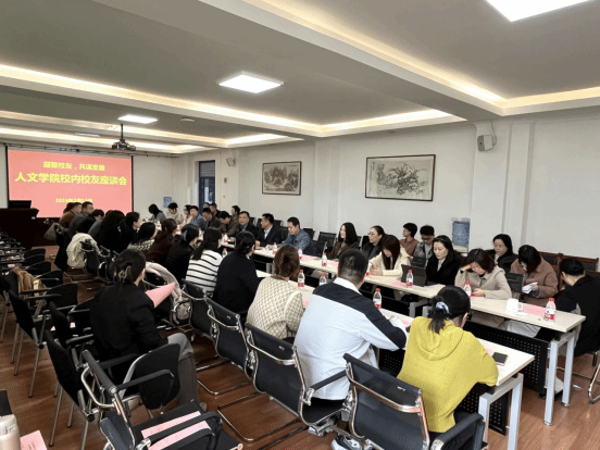 3月13日下午,人文学院召开以“凝聚校友,共谋发展”为主题的校内校友座谈会。学校社会合作处处长杨红斌,校内各单位30余名人文学院校友、学院领导班子全体成员、教工党支部书记、系(中心)主任,各学科组组长、科级干部参加座谈会。会议由人文学院党委书记、院长杜智民主持。
