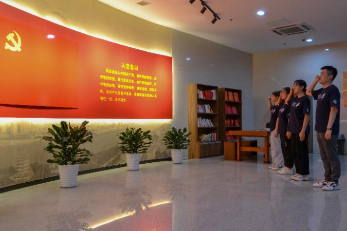 7月28日上午,实践队前往安康博物馆深入学习安康特色资源,感悟人文历史,传承安康的红色精神。在第一、二展厅展示了安康的生物、水、矿藏和人文旅游资源以及古代文明发展史,展厅通过实景再现和场景绘制相结合的方式,辅以声光电技术,让队员们跨越时空与历史安康零距离对话,深刻体悟浓郁的汉水文化。安康还是“三线”建设的主战场,由铁道兵、民兵和学生组成的83万筑路大军在襄渝铁路和阳安铁路上书写了中国铁路修建史上最为壮烈的一幕,展览将当年施工场景还原,再现了那段激情岁月。除此之外,安康博物馆还有烈火记忆——安康抗战专题展及庆祝中国共产党成立100周年展,在神圣的党旗下,许超然老师和队员们一起重温入党誓词,坚定理想信念。实践队员们一同阅读学习了《中国共产党简史》等党史学习资料,队员们在学习中汲取奋进力量,赓续中国共产党人的精神和血脉。
