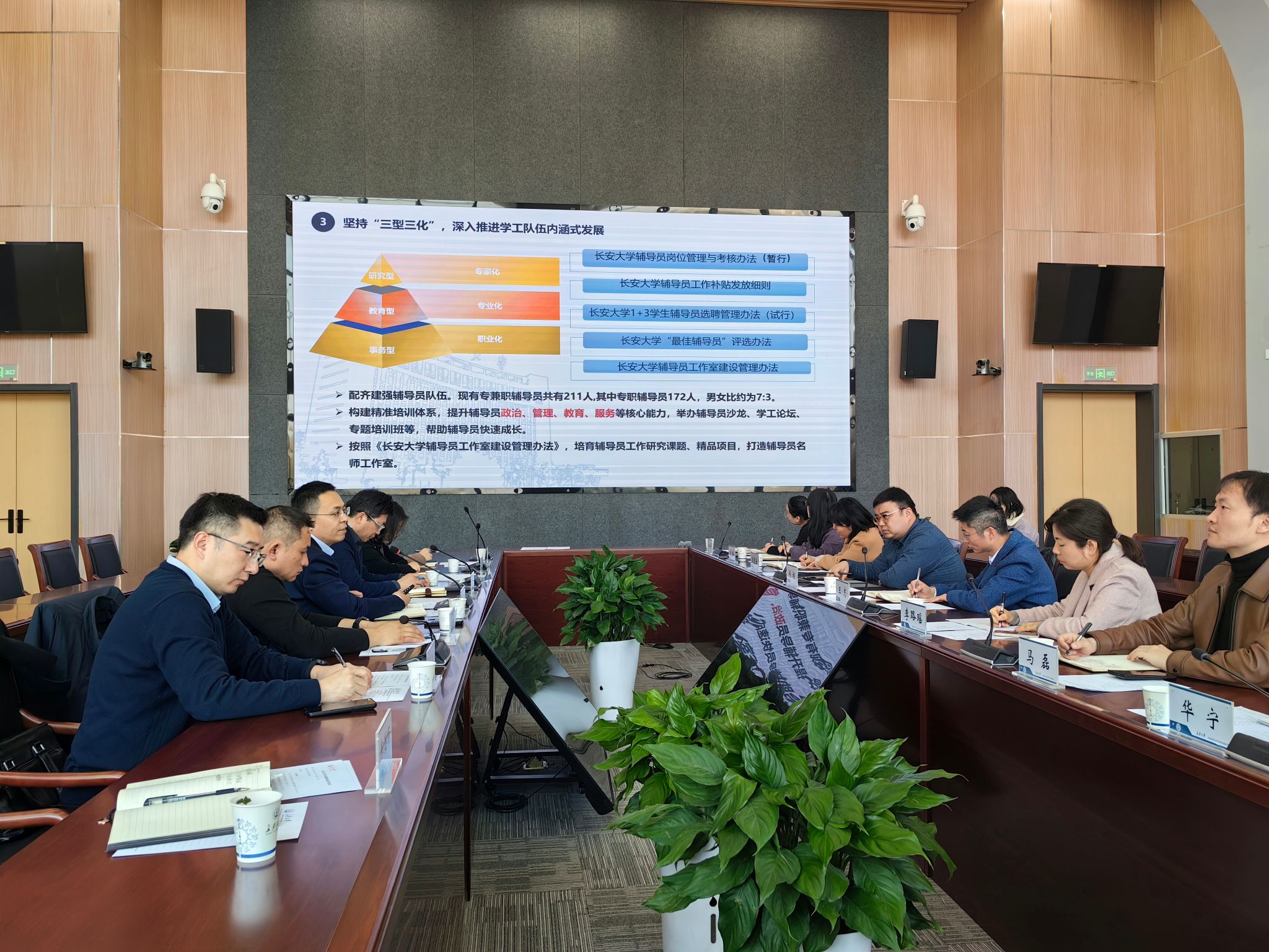 3月13日下午,西安工程大学党委学生工作部(学生处)部长王志一行10人来校调研,bat365学生工作部相关负责人参加座谈会。会议由学生工作部 (学生处)、武装部部长姬国斌主持。