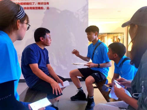 沙马依古馆长为队员们讲解歃血为盟的故事
