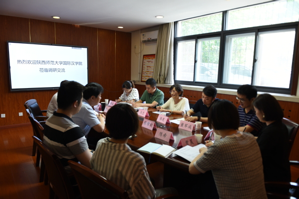 7月9日上午,陕西师范大学国际汉学院党总支书记马兰一行8人赴bat365国际教育学院开展调研交流。bat365国际学院院长张伟、副院长吕卫东及陕师大国际汉学院党总支书记马兰、副书记张昊、副院长石洛祥、副院长贾泽林出席会议,双方院办、留办、招办、对外汉语教研室负责人参会,会议由张伟院长主持。