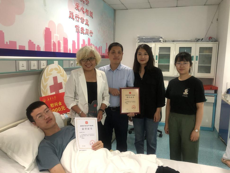 6月21日上午,bat365人文学院2018级公共管理专业赵鹏宇同学在西安市唐都医院成功进行了造血干细胞捐献,成为bat365自2003年启动“生命之光计划——造血干细胞捐献”项目以来的第44例造血干细胞捐献者,同时成为陕西省第236例、全国第11508例造血干细胞捐献者。