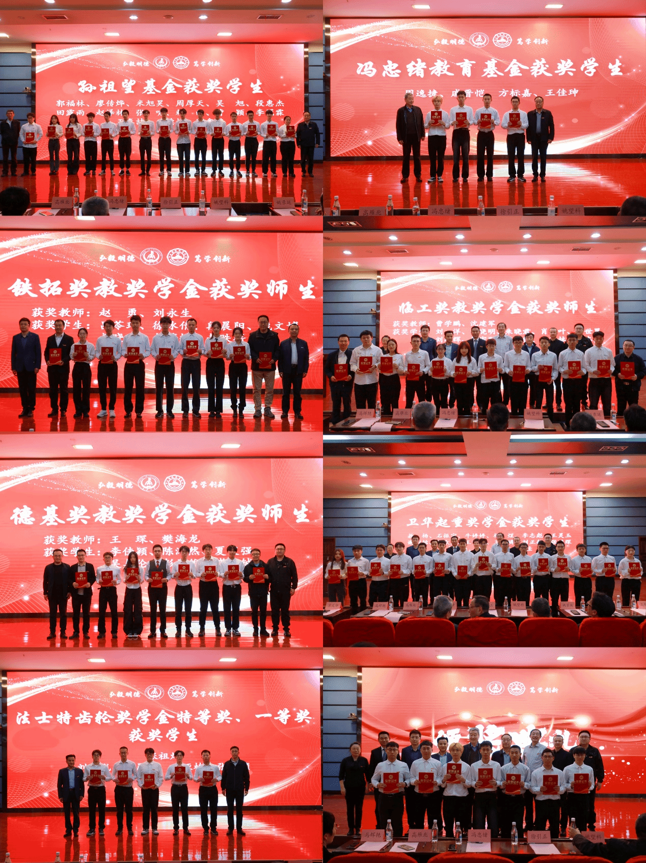 徐引正代表学校向“孙祖望基金”“冯忠绪教育基金”“铁拓奖教奖学金”“临工奖教奖助学金”“德基奖教奖学金”“卫华起重奖助学金”“法士特齿轮奖学金”的设立个人和单位表示由衷的敬意,向多年来关心和支持学校发展的各位企业、校友表示衷心的感谢,向获得社会奖教奖(助)学金的师生表示热烈的祝贺,他指出,73年来,学校始终秉承“弘毅、明德、笃学、创新”的校训精神,坚持贯彻落实立德树人根本任务,主动服务国家行业重大战略需求,为行业发展提供坚强的技术支撑和人才保障。希望工程机械学院以颁奖典礼和学校73周年华诞为契机,贯彻“高质量发展年”行动计划,继续加强与合作企业联系,积极推动政产学研用深度融合,努力培养一流人才,形成全方位、立体式支撑和引领行业建设与发展的新格局。