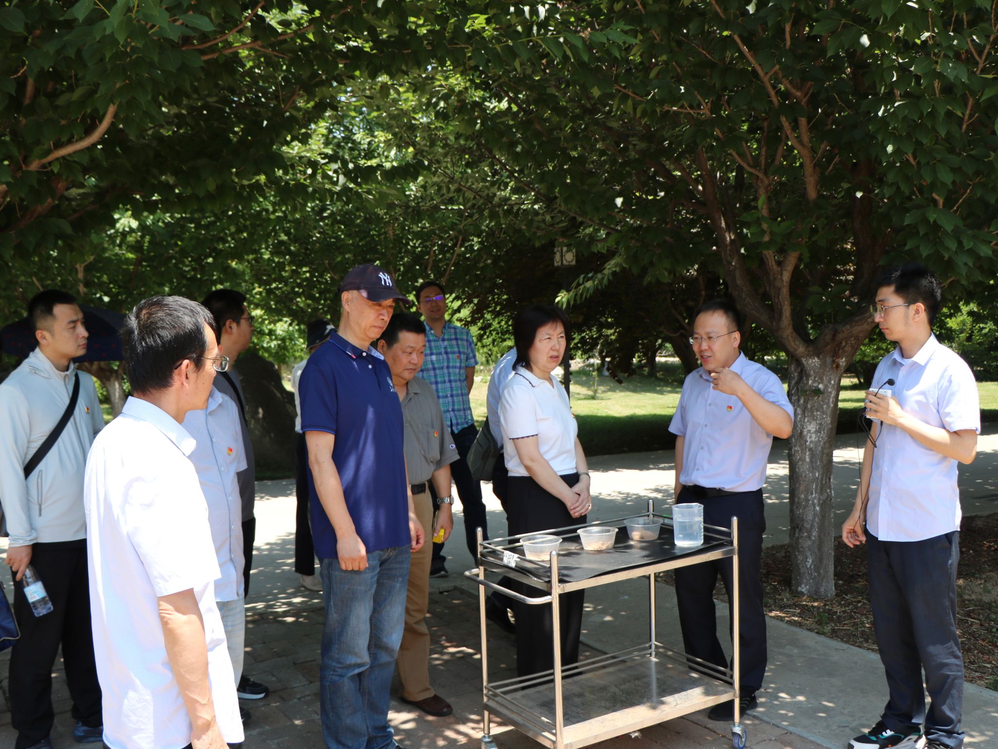 党课学习后,大家实地考察了基地内的试验田小区、科研温室、检测实验室,了解了富平中试基地的发展历程和在科技研发、技术攻关、成果转化等方面工作成效。