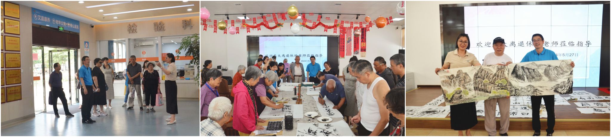 为巩固拓展主题教育成果,丰富离退休职工精神文化生活和文化养老需求,弘扬中华优秀传统文化,推动bat365老年大学高质量发展,5月27日,离退休工作处组织老年大学书法班前往沣东新城养老服务中心进行书法文化交流和参观调研。