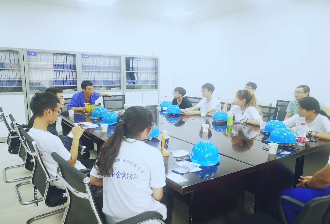 生产现场参观结束后,实践队来到会议室,针对自己心中的疑惑向孙凯学学长提问,其中包括:为了更加绿色环保将三氧化钼水洗废水再利用过程中的专业问题;大学生毕业后如何快速适应工作岗位,并把书本上的知识熟连的运用在工作中,如何将个人的目标同国家的宏伟目标结合起来的。孙凯学学长从专业的角度结合自己的实验成果为实践队员解答了废水再利用过程中的疑问,并以自身经历以及所带的实习生为例介绍了如何快速适应工作和将知识转化成能力的经验和方法,使实践队员深刻的了解到课本知识与实际问题的差异;学长还从国家角度进行分析,未来的化工生产将更加绿色环保高效,鼓励同学们将个人目标与国家目标紧密结合,实现自我价值。
