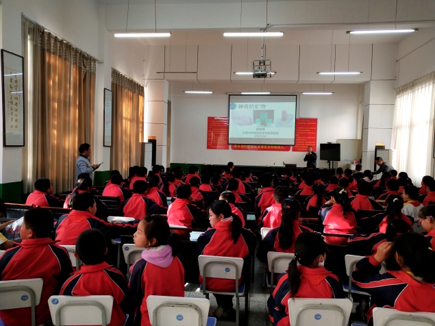 在十里坪镇九年制学校,大家实地查看了学校基本校舍、图书室和地学科普讲座场地等。下午,肖良副教授和夏昭德副教授联合为学校的四年级、五年级和六年级同学作了题为《化石会“说话”》《神奇的矿石》地学科普讲座。深入浅出地讲解化石背后的故事,一个个问题引领一个个有趣画面展开,使同学们了解了地球生命演化的过程,领悟了生命的奥妙;“神奇的矿物”不仅让同学们欣赏到了各式各类色彩斑斓的矿物,还讲解了这些矿物在国民经济建设和发展中的各类用途以及保护环境的重要性,开阔了同学们眼界并从小树立起“绿水青山就是金山银山”理念,同时播撒了“热爱自然·珍爱地球·守护秦岭”的种子。讲座中,还展示了学校馆藏的地质小标本,在互动环节,为踊跃答题的同学发放了内含地学知识的精美纪念品和奖品。