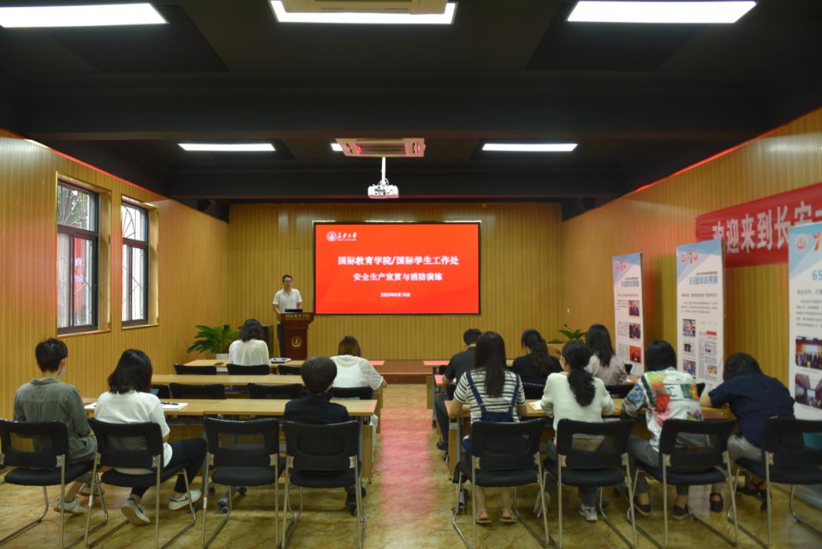 为贯彻落实《bat365正版唯一官网2023年安全生产工作要点》及《关于开展校园安全生产重大事故隐患专项排查整治2023行动的通知》的部署和要求,全面深化安全生产主题教育,国际教育学院/国际学生工作处高度重视,严格按照“深入开展‘安全生产月’活动暨安全生产文化提升行动”要求,6月16日上午,开展了安全生产宣贯和师生消防演练活动,学院在校全体教职工和国际学生代表参加主题活动,活动由副院长孙林主持。