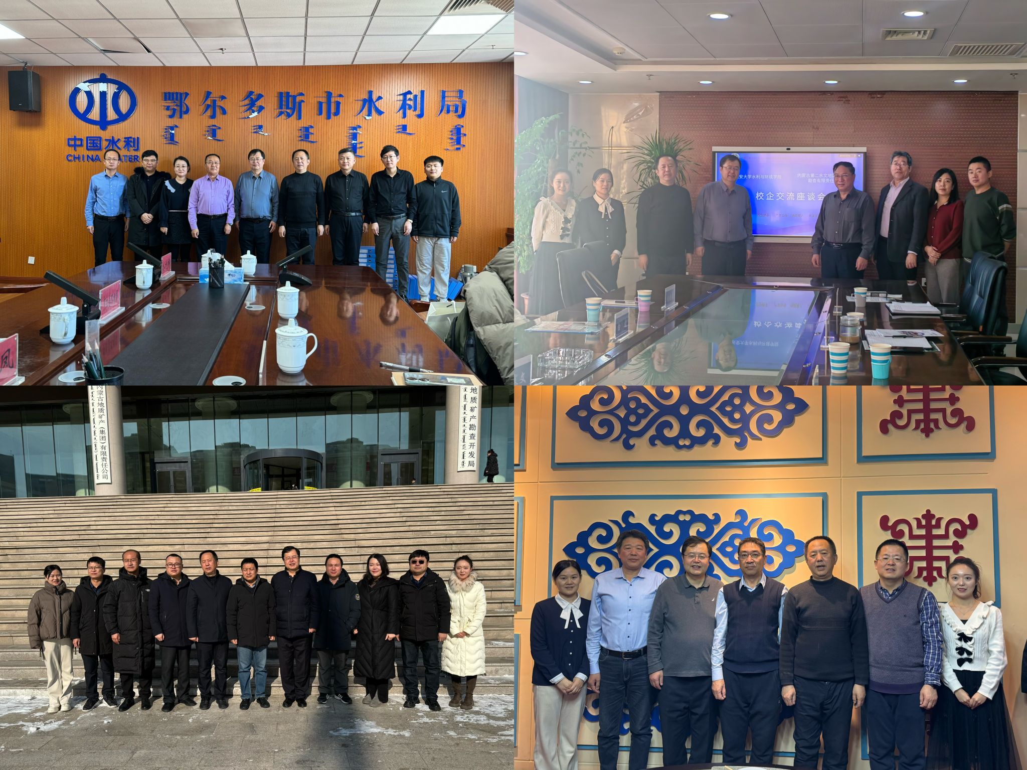 1月20日至24日,水环学院党委书记张骞文、院长白波等一行4人赴内蒙古走访调研,先后与鄂尔多斯市人民政府、水利局、自然资源局、生态环境局、路泰公路工程有限责任公司、内蒙古第二水文地质工程地质勘查有限责任公司、内蒙古地质矿产(集团)有限责任公司、内蒙古科学技术研究院开展座谈交流。