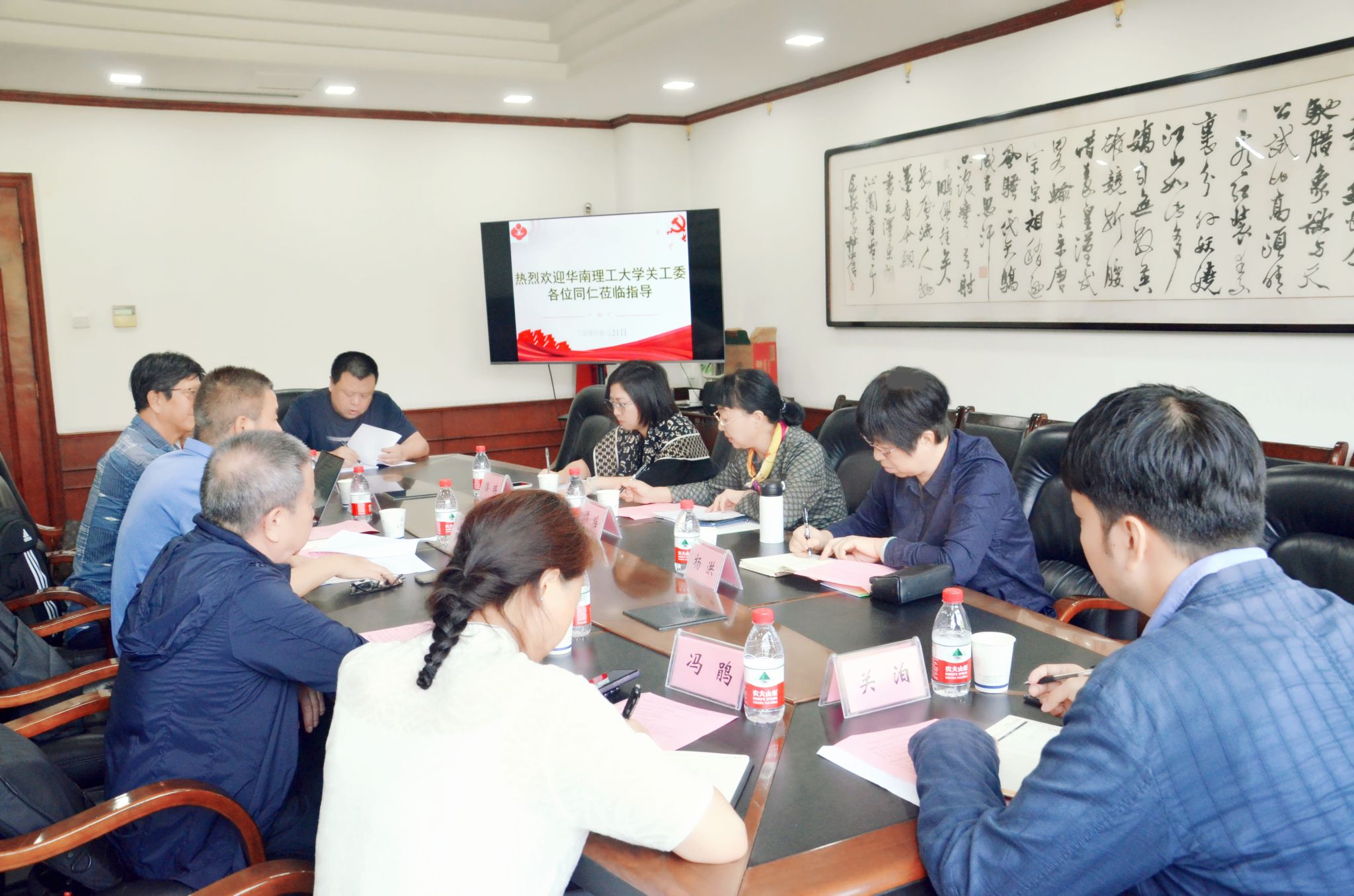 谭瑶介绍了华南理工大学全方位督导模式、课程思政建设和关工委工作。随后,双方就关工委工作、课程思政的教育教学特色、关工委参与课程思政的指导和督导的模式与路径、课程思政管理相关的制度等方面进行了深入交流,分享了经验和特色。