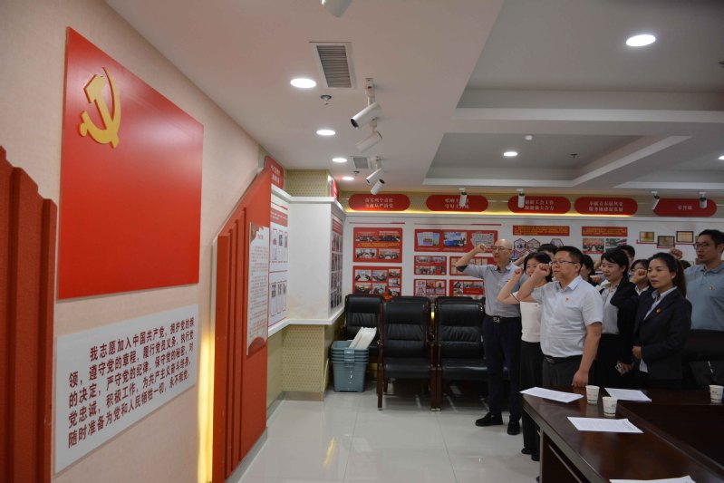 活动中,与会人员重温了入党誓词,参观了集团大厅企业成果展示区。