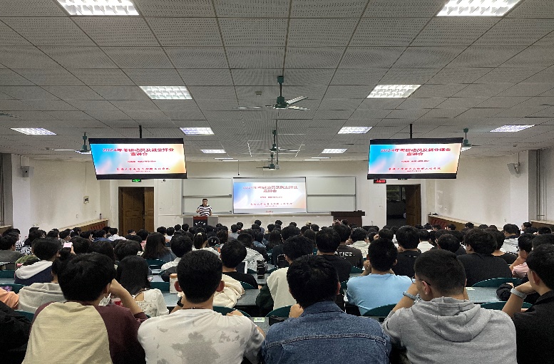 针对2020级本科生,闫茂德以“升学or就业,如何理性选择?”为题做了升学指导和就业动员讲座。他从为什么要考研、2024年考研形势、如何选择考研学校与专业、如何考研备考、留学申请和就业择业指导等六个方面做了讲解,希望同学们树立正确的考研观和就业观,并就大家在考研、留学和就业等方面提出的问题给予耐心解答和指导。