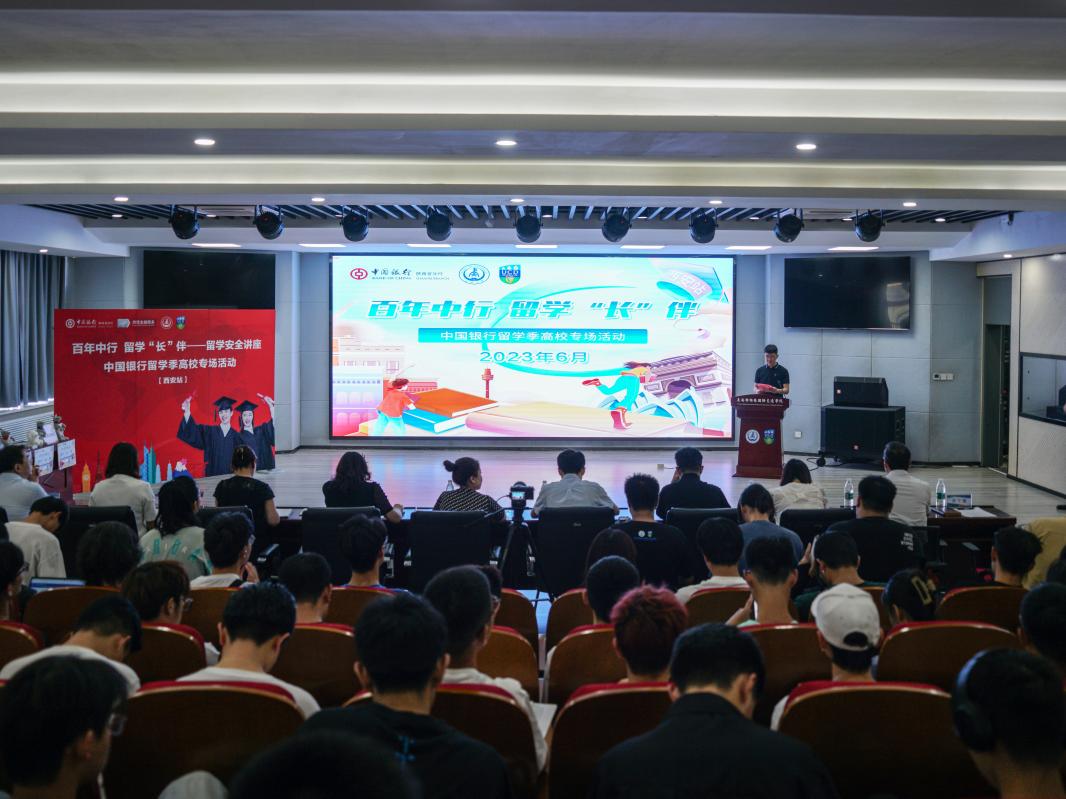 6月14日下午,学校联合中国银行陕西省分行在北校区鸿远教学楼四楼报告厅举办了拔尖优辅计划之“百年中行留学‘长’伴”留学安全专题教育讲座。长安都柏林国际交通学院党总支书记赵亮、公路学院党委副书记、副院长姚以亮以及中国银行陕西分行相关人员出席了讲座。讲座由长安都柏林国际交通学院学生事务部主任孙士强主持。