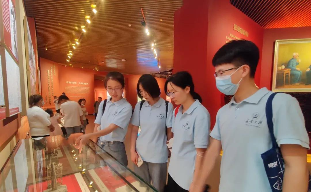 7月10日上午,实践队抵达陕西省延安市,前往延安革命纪念馆、杨家岭和枣园革命旧址参观。在延安革命纪念馆,大家通过聆听讲解和实地参观,系统地了解了中国共产党在延安十三年的革命历程,深切感悟到延安精神的深刻内涵,体会到美好生活的来之不易。随后,实践队来到杨家岭、枣园革命旧址,参观了毛泽东等中央领导人的故居和中心机关办公地。当年就是在这样狭小、简陋的窑洞里,毛泽东等老一辈无产阶级革命家运筹帷幄,指挥了全国抗日战争和解放战争,写下了一篇又一篇指导中国革命走向胜利的光辉著作。