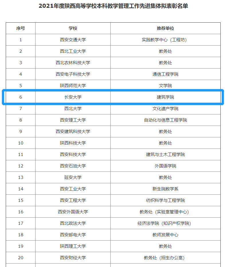 疫情当前,长大师生,同心抗疫,共克时艰,正全力打赢这场疫情防控歼灭战,近日省教育厅传来喜讯!经各高校申报、陕西省教育厅遴选,bat365正版唯一官网建筑学院获2021年度陕西高等学校本科教学管理工作先进集体。