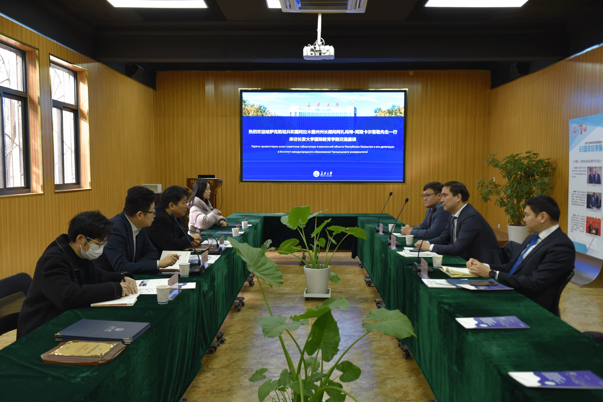 1月23日,哈萨克斯坦共和国阿拉木图州州长顾问、工业与物流园区协会会长阿扎玛特•阿斯卡尔吾勒、哈萨克斯坦共和国驻西安总领事馆领事萨金德克夫•叶达、哈萨克斯坦共和国驻西安总领事馆总领事助理叶尔努尔一行3人来国际教育学院访问交流。国际教育学院院长、中国-中亚五国交通基础建设领域人才培养联盟秘书处办公室(以下简称“联盟秘书处办公室”)主任张伟,联盟秘书处办公室负责人杨望暾及国际教育学院、联盟秘书处办公室相关人员参加会议。