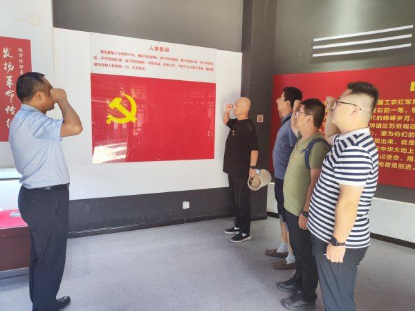 参观过后,全体党员面向党旗重温入党誓词,庄严宣誓,感悟初心使命的力量。