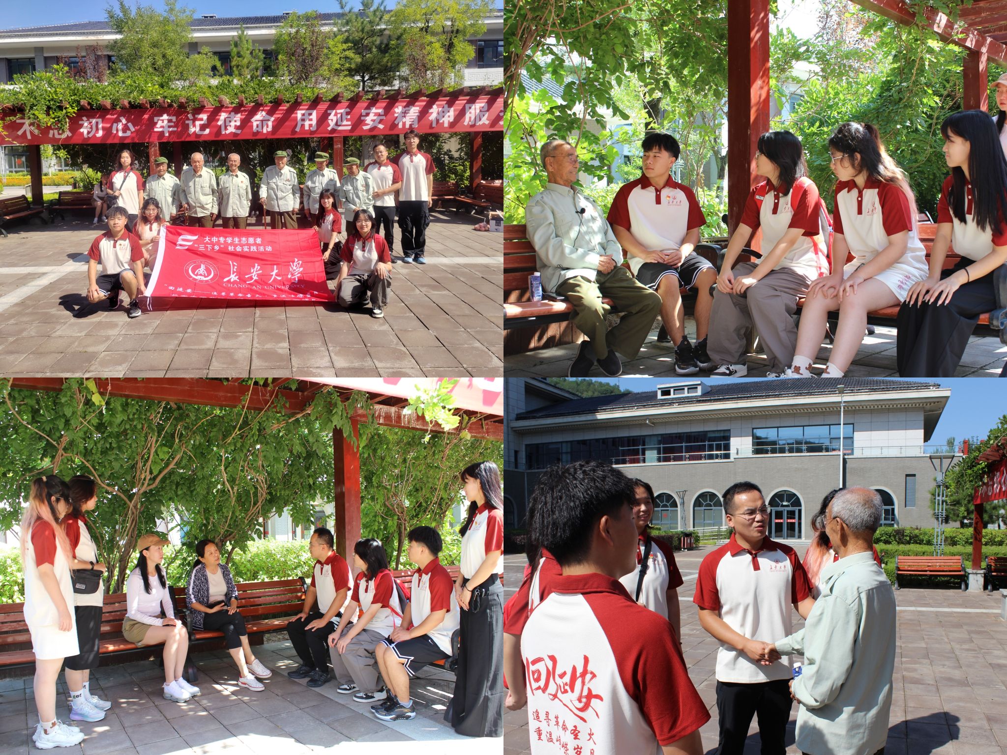 革命英雄讲党课,重温峥嵘岁月。实践队走进延安市八一敬老院聆听老红军爷爷讲述解放大西北、血战上甘岭的老兵故事,采访“政治活教材”——抗美援朝老兵付态恩、刘玉吉,并与敬老院支部书记、院长薛莉,护理一科科长郭帅座谈。