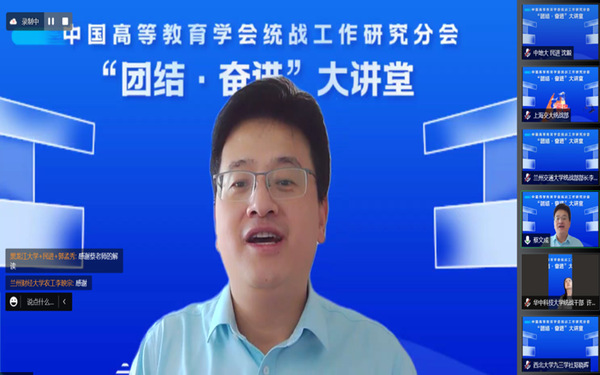 为深入学习宣传党的二十大精神,贯彻落实习近平总书记关于做好新时代党的统一战线工作的重要思想,10月24日下午,高等教育学会统战工作研究分会线上举办了“团结·奋进”大讲堂,邀请国家级人才计划哲学社会科学领军人才、兰州大学马克思主义学院院长蔡文成教授作题为《领航新时代奋进新征程——深入学习宣传贯彻党的二十大精神》的专题辅导报告。bat365民主党派成员、无党派人士和统战干部共20余人线上参加了学习。