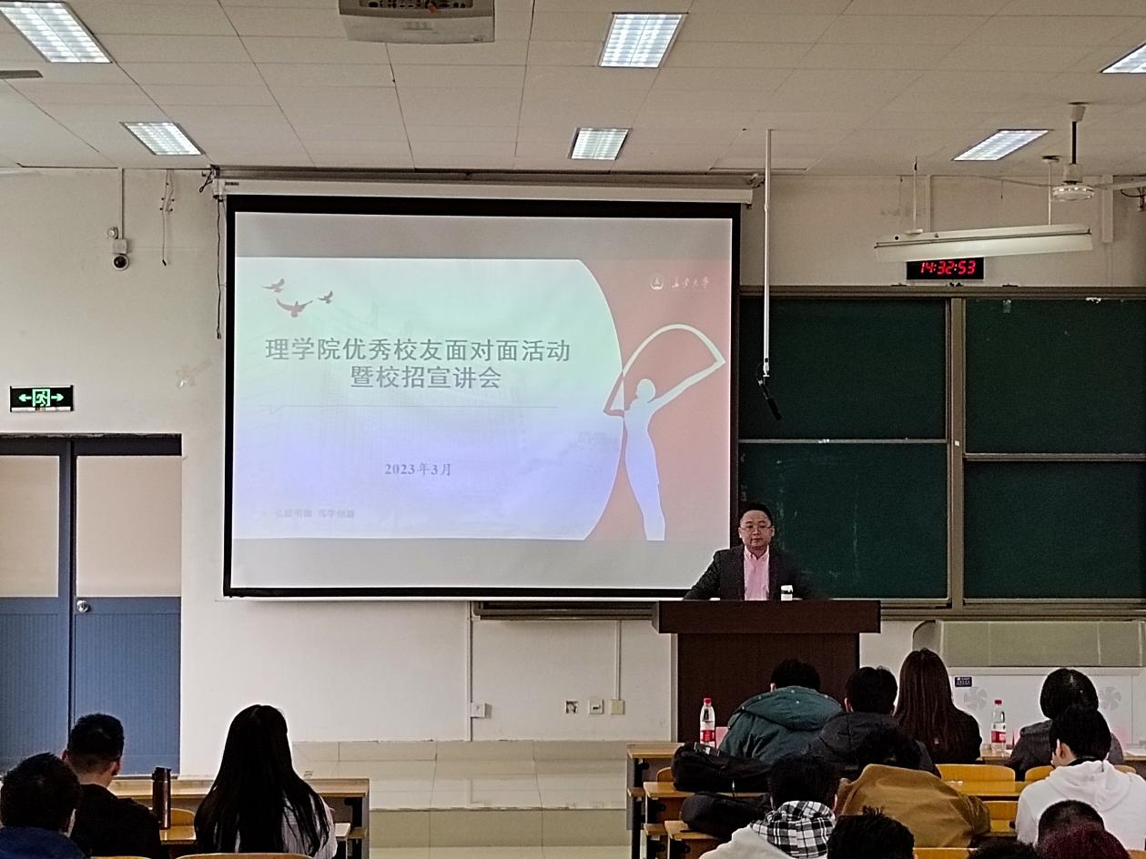 为发挥优秀校友的榜样引领作用,提升访企拓岗促就业的实效性,引导学生形成科学的职业生涯规划,促进学生更加充分和更高质量就业。3月24日下午,理学院在渭水校区明远3201举办了优秀校友面对面活动暨校招宣讲会。活动邀请了理学院优秀校友、西安中创新能网络科技有限责任公司董事长兼总经理吴林河,公司人事经理李玉娇,部门经理张永丽,新媒体运营经理王娜以及技术工程师陈博宇。理学院党委副书记屈颖,学办主任刘延海,大三、大四本科生及部分大一、大二年级学生代表参加了本次宣讲会,本次活动由刘延海主持。