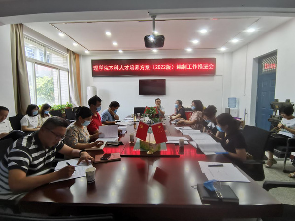 为扎实推进学院培养方案的编制工作,做好人才培养方案的顶层设计,不断提升人才培养质量,7月8日上午,理学院在学院306会议室召开了本科人才培养方案(2022版)编制工作推进会。会议由教学副院长商泽进主持,学院各专业负责人、专业责任教授、系主任、课程负责人、骨干教师代表以及教学秘书参加会议。教务处主管本科人才培养方案修订工作副处长陈永楠出席会议,并解读相关文件精神及要求。