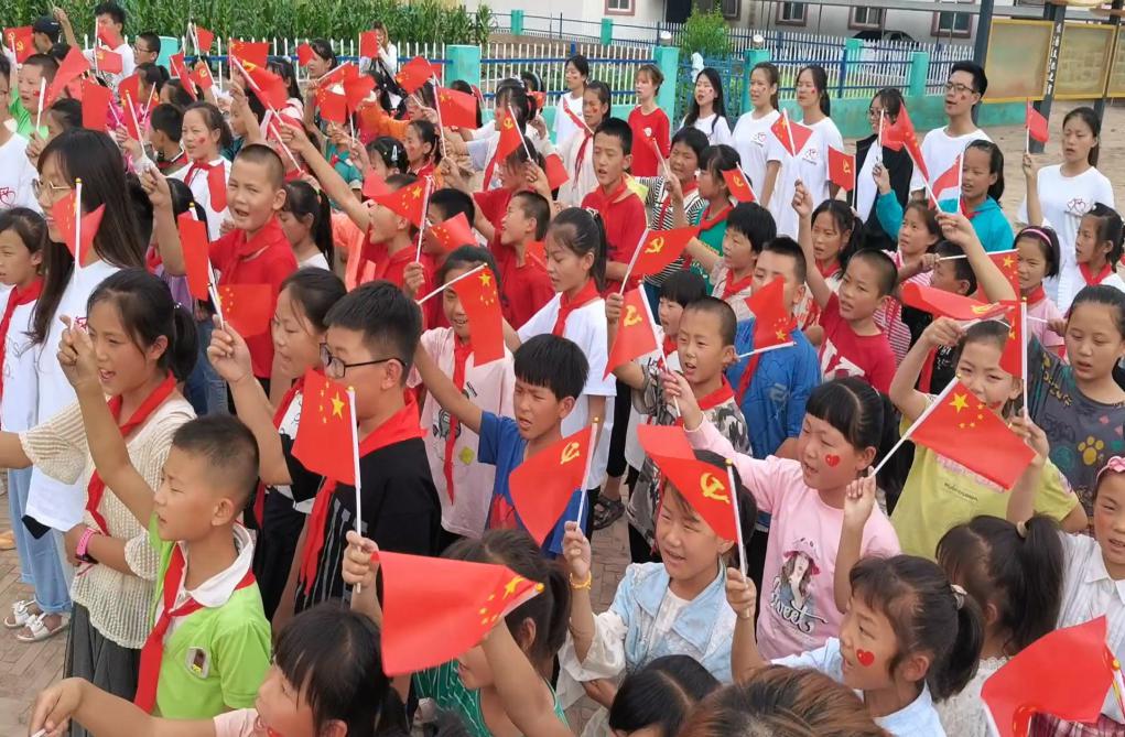 7月26日下午,全体师生参加升旗仪式,五年级胡可同学进行国旗下讲话,以“畅想未来”为主题,表达了学生走出大山走向更广阔世界的希冀。随后,全体师生开展以“我和我的祖国”为主题的快闪活动,以特别的方式进行爱国思想教育。