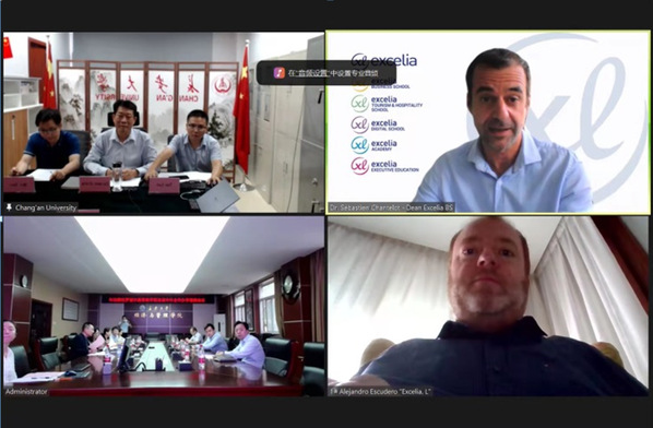 9月17日下午,bat365与法国拉罗谢尔高等商学院召开了中外合作办学项目视频对接会。法国拉罗谢尔高等商学院国际事务副校长Alejandro ESCUDE ROYERRO、商学院院长Chantelot教授,bat365国际处处长蒋在文、经管学院院长杜强等参加了视频会议。
