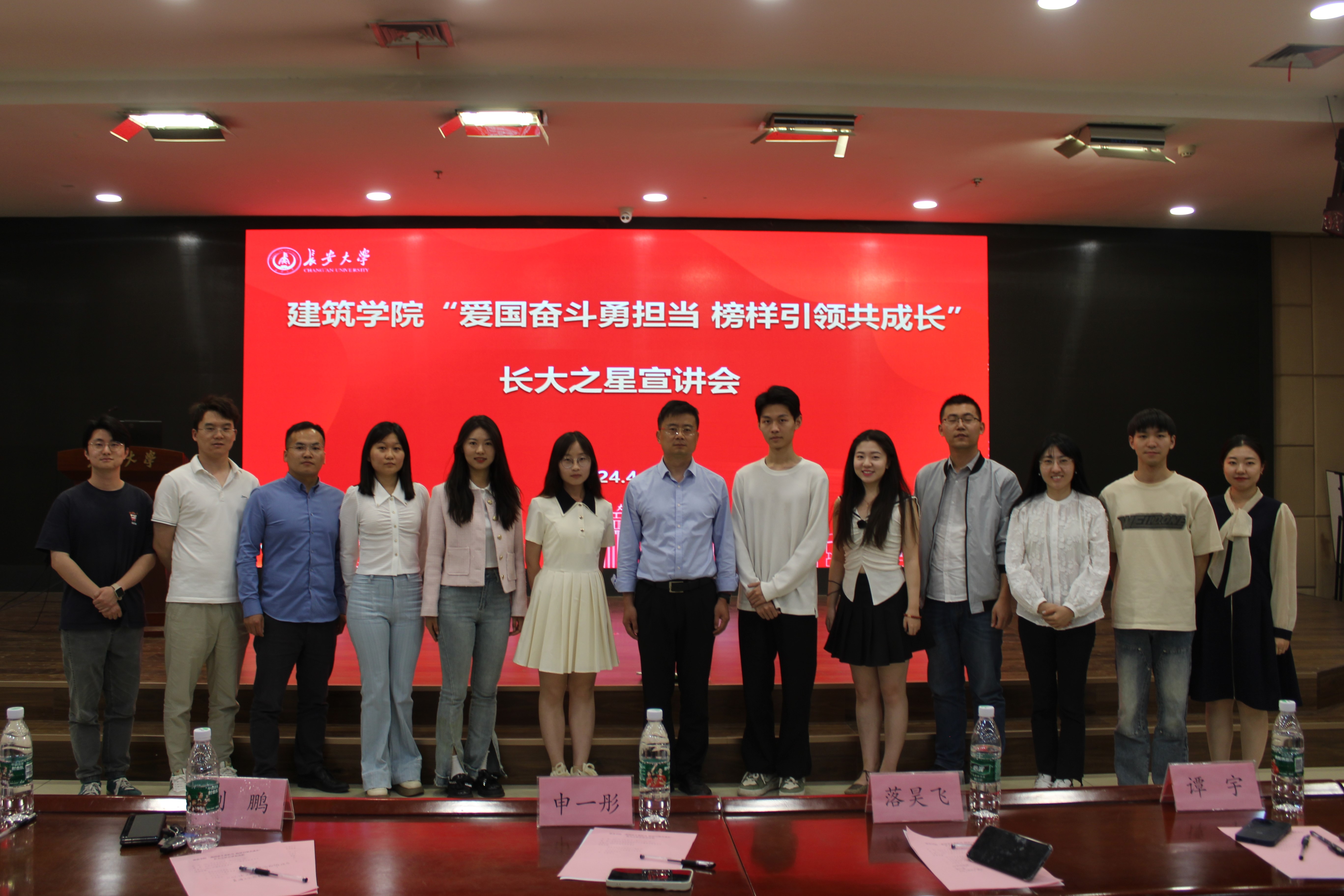 4月23日晚,建筑学院在北校区长安文化艺术中心三楼多功能报告厅举办首场“爱国奋斗勇担当,榜样引领共成长” 长大之星宣讲会。院党委副书记刘鹏出席宣讲会,各年级辅导员、2023级全体本科生和其他年级学生代表等参加宣讲会。本次宣讲会由辅导员李博轩主持。