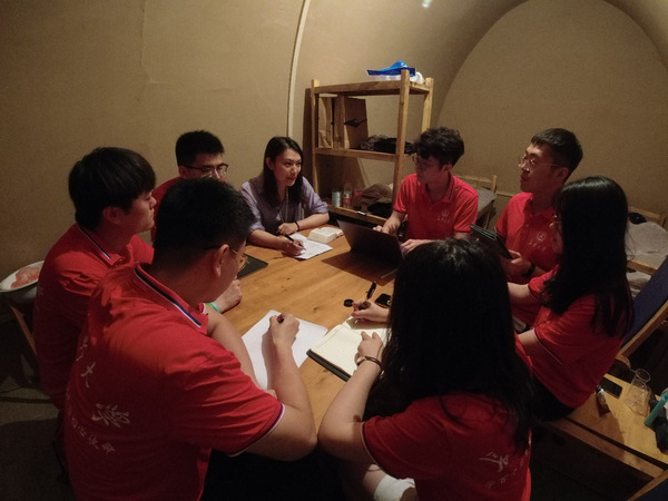 实践队自主开展党史学习研讨会3次,特别是在西北局窑洞中开展了主题学习会,队员们在窑洞中与革命先烈进行了隔空对话。实践队员还有幸聆听了延安干部学院赵耀宏教授的主题讲座,并在实践结束后就自己感兴趣的问题积极请教,与赵教授进行了深入交流。