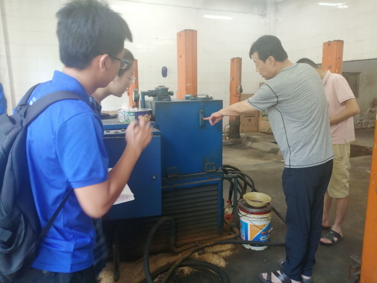 实践队在垃圾压缩站内听负责人讲解设备运行
