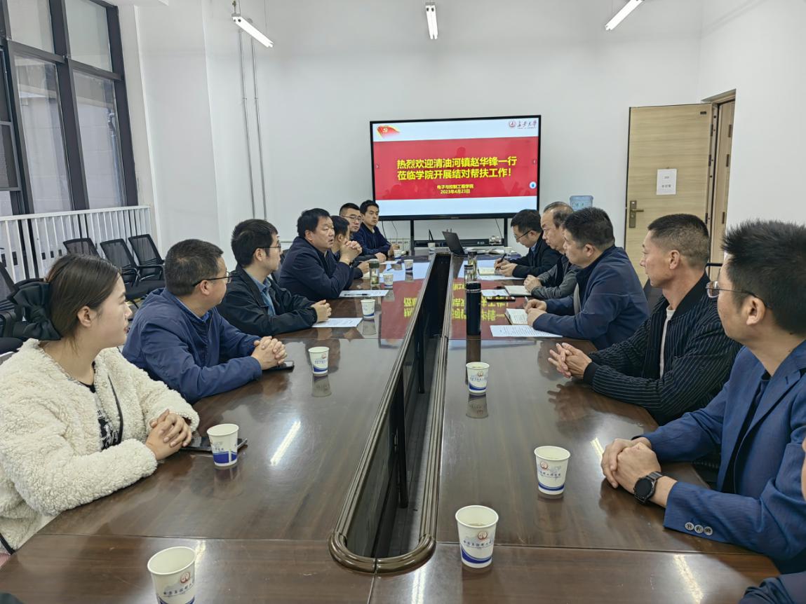 4月23日下午,商南县清油河镇党委书记赵华锋一行12人到电控学院就深化乡村振兴工作进行座谈交流。学院党委副书记、副院长、分纪委书记李炬,党委副书记李阳,副院长惠飞,党委秘书种超参加此次会议,会议由李炬主持。