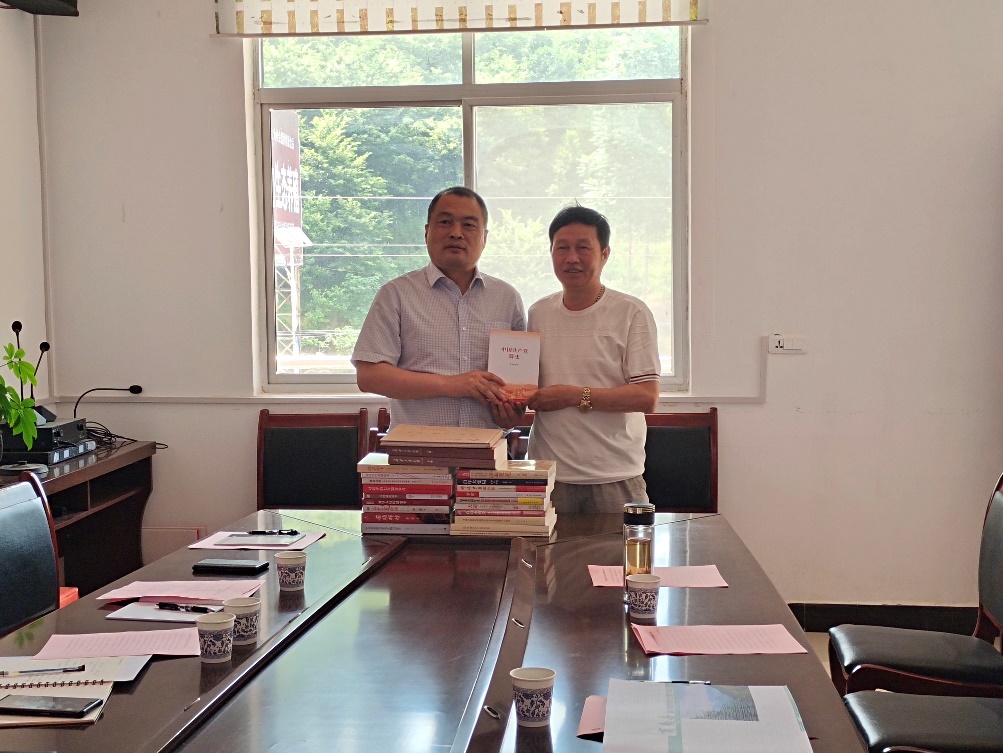 建筑学院党委书记李险峰向店坊河村赠送了党史学习的系列书籍和bat365正版唯一官网纪念宣传册。