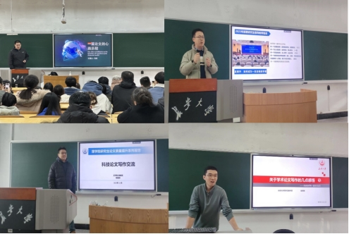 数学学科教师石垚以自己发表在《SIAM Journal of Applied Mathematics》(中国数学会T1期刊,美国工业与应用数学学会会刊)上的代表性高水平科研论文为切入点,用自身成文过程介绍如何更好地抓取科研思路、快速明确论文的研究目标、确定选题和研究内容;力学学科教师马维力以“学术论文写作体会与‘教训’”引入话题,从如何写好一篇学术论文切入,强调了论文对于学术水平、毕业就业、个人发展的重要性,并介绍了如何合理分配写作时间配比,更好把握文章修改这一关键点;物理学科教师王学智结合自己的学术交叉研究背景,介绍了融合多学科背景的思维模式,从深挖问题、分析问题、解决问题等方面,由宏观到微观介绍了寻找创新点、深挖创新点、撰写成文、高颜值图例提升论文可读性等的论文写作细节;数学学科教师赵楠楠结合自己的研究经历,分享了如何选择课题、如何开展课题、如何提出新想法,以及如何写一篇合格的学术论文。