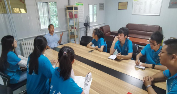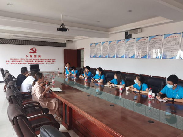 干部陈皓为实践队员讲解陈炉镇乡村振兴和巩固脱贫成果的相关工作情况