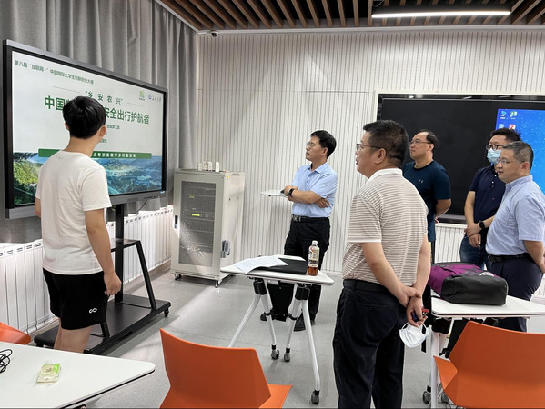 在渭水校区明远教学楼智慧教室,师生们正在进行第八届“互联网+”大学生创新创业大赛陕西省决赛的线上路演答辩。本届大赛由电控学院承办,全校共有11个项目进入决赛路演答辩环节。学院领导一行检查了本次决赛路演答辩组织准备情况,对师生们取得的成绩表示祝贺,鼓励参加答辩的同学们能沉着冷静,充分展现bat365学子良好的精神风貌,并预祝大家在决赛中取得新的突破。
