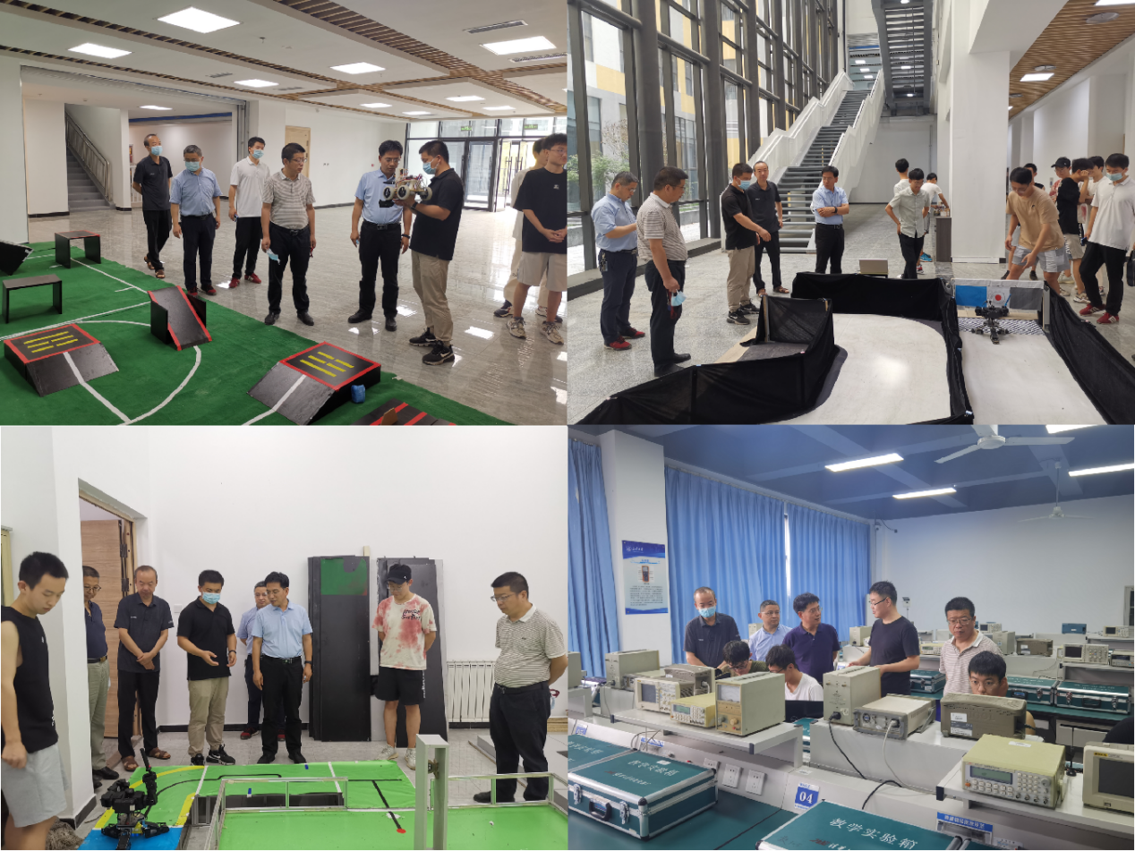 在学院实验楼,学院领导与暑期集训备战2022年中国机器人大赛和陕西省大学生电子设计竞赛的师生交流了竞赛进展情况,鼓励师生们传承和发扬学院学科竞赛团队的优良学风和成功经验,做好充分准备,并叮嘱同学们注意防暑降温和劳逸结合,遵守学校的留校规定,配合学校做好疫情防控工作。