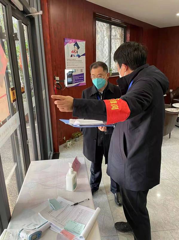 自从本轮疫情发生以来,国际教育学院深入贯彻落实学校和上级部门疫情防控工作要求,众志成城,打响疫情防控阻击战。在寒假假期来临之际,为更好做好国际学生疫情防控各项工作,鼓舞师生员工斗志,1月19日,副校长赵祥模到国际教育学院检查指导国际学生疫情防控工作。国际教育学院院长张伟陪同。