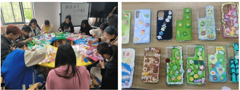 “心理+运动”侧重学生身心协调发展,为鼓励学生走出宿舍,走下网络,走向操场,学院组织“新生杯”篮球赛、班级风采大赛,组织学生参与学校、省市级网球赛、游泳比赛、田径比赛等,激励学生磨练意志,奋发向上,体魄和心灵焕发青春光彩;“心理+成长”侧重丰富第二课堂活动,学院二级心理站设置“心愿墙”,学生用便利贴留下了美好的友谊和生活的憧憬,引导学生进一步树立正确的生命观。结合学校“彩虹心理文化节”,学院心理站开展“释压减负·涂绘青春”手机壳创意设计活动,引导学生发现生活的美好,提升生活幸福感。此外,学院通过微信公众号、微信视频号、微博、QQ空间号等媒体平台构建心理育人媒体矩阵,做好心理健康知识科普宣传,打造“生活感悟”“温暖行动”“心愿墙”等宣传模块分享学生校园生活,营造积极阳光,开朗向上的心理育人氛围。