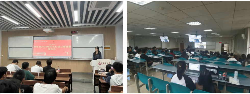 发挥学生骨干群体作用,师生联动共防心理危机事件。为更好地维护学生心理健康,进一步发挥朋辈力量在大学生心理健康教育中的重要作用,学院多次开展心理讲座。根据各年级所处的不同阶段,各班开展主题心理班会,帮助学生掌握简便有效、容易操作的心理调适方法。学院每学期进行一次次心理委员培训,强调心理委员职责,普及大学生心理健康知识和常见精神疾病的识别,让心理骨干们对心理健康标准和心理危机特征有充分的了解。组织心理委员进行“做情绪的主人”主题团体辅导,以提高心理委员工作能力;组织各年级宿舍长开展心理健康培训,发挥朋辈力量,加深同伴互助。学院以系统化、多层次、全覆盖的心理健康教育特色服务机制,积极构建网格化管理,通过宿舍长-心理委员-辅导员全方位联动,预防心理危机事件,提升全员育心、全心育人工作质量。