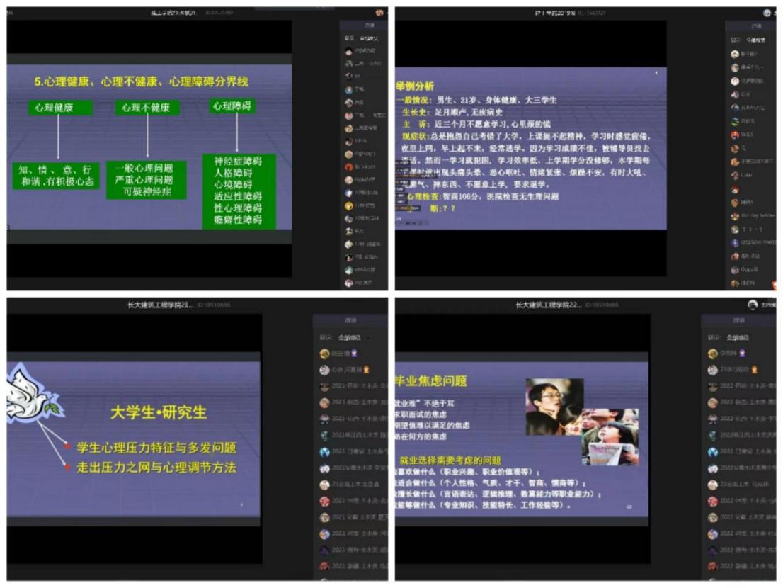 为持续推动学院心理健康教育工作走深走实,进一步提高心理健康教育针对性,提升广大师生的心理调适能力,切实促进疫情防控期间大学生身心健康全面发展。10月29日晚,建工学院举办心理健康教育专题讲座,特邀陕西师范大学心理学院陈青萍教授为全体本科生、研究生授课。讲座以视频会议形式进行,建工学院党委副书记孟庆鹏、bat365正版唯一官网心理健康教育与咨询中心副主任刘飞、建工学院学生工作办公室主任刘云博和全体辅导员参加讲座。