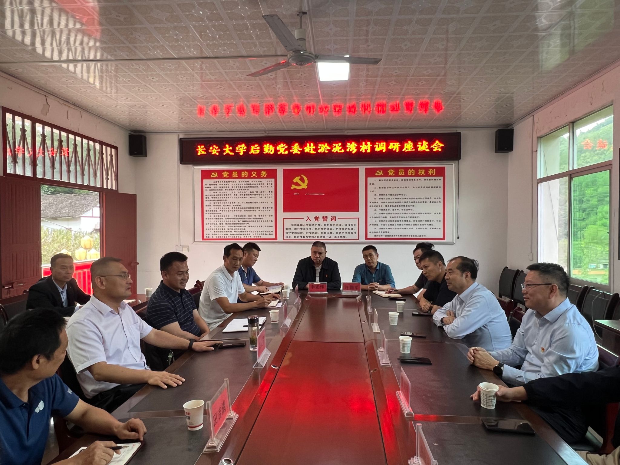 座谈会上,栾义峰介绍了学校在商南县乡村振兴工作的规划布局,对后勤党委在商南县及淤泥湾村乡村振兴工作中提供的支持表示感谢。赵川镇镇长苏渊明介绍了赵川镇及淤泥湾村发展愿景。淤泥湾村党支部副书记胡明国介绍了村两委班子成员、基层党建、基础设施、产业发展等方面的情况,交流了集体经济发展中的难点和需求。
