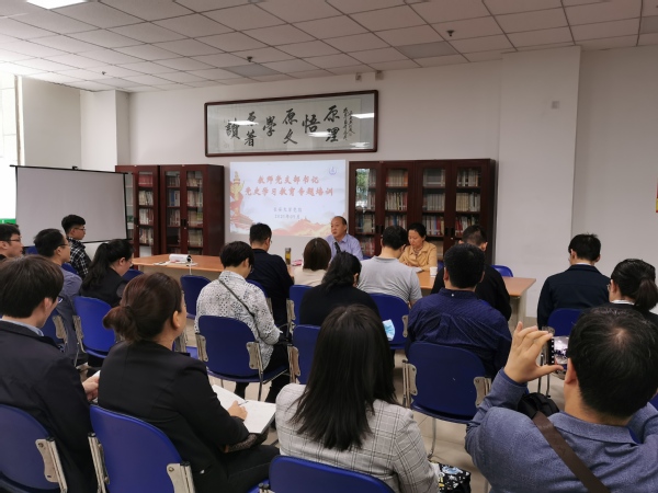 王耀文在培训中带领与会学员回顾了中国共产党统一战线形成、发展和壮大的历史进程,阐释了习近平统一战线重要思想和《中国共产党统一战线工作条例》,对习近平总书记提出的统一战线“三个重要法宝”作用和“做好新时代统战工作,最根本的是要坚持党的领导”进行了全面解读,对如何做好高校统一战线工作进行了详细而深刻的诠释。报告脉络清晰,讲解透彻,为教工党支部书记进一步做好党外教工凝心聚力工作提供了学习指导。