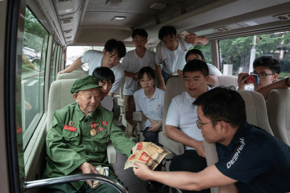 实践队还邀请到抗美援朝老兵韩永祥分享革命故事。“停战协定签署的那天,战友们别提有多高兴了,我们用两年多时间换来了宝贵胜利”,时任志愿军后勤司令部电话员的韩永祥向队员们说。这一刻,队员们切实感受到:为什么志愿军们是“最可爱的人”。