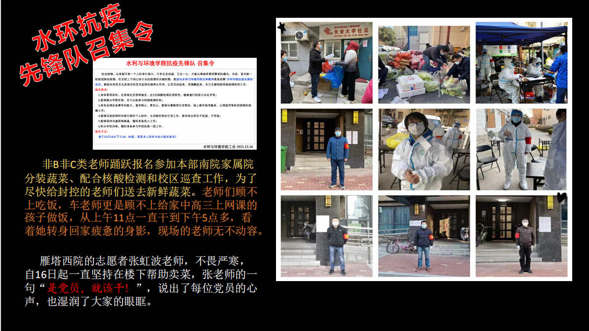 突如其来的疫情打破了校园的宁静。为有效防控疫情,目前所有线下活动全部暂停,所有课程均转为线上教学模式,宿舍成了我们每日唯一的阵地。思政班主任高倩首先表示了对本次疫情中积极参与志愿活动同学们的高度赞扬,并希望同学们疫情期间做好防护,好好利用在宿舍的时光。此外,还向我们展示了水环学院老师们的志愿风采以及党员的抗击疫情的必胜信念。