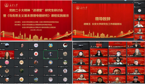 为深入学习宣传贯彻党的二十大精神,让党的二十大精神走进课堂,11月24日上午,马克思主义学院举办学习“党的二十大精神‘进课堂’研究生研讨会暨《马克思主义基本原理专题研究》课程实践展示”活动。学校研究生工作部副部长胡锦玉、马克思主义学院党委副书记郭云珠受邀出席活动。