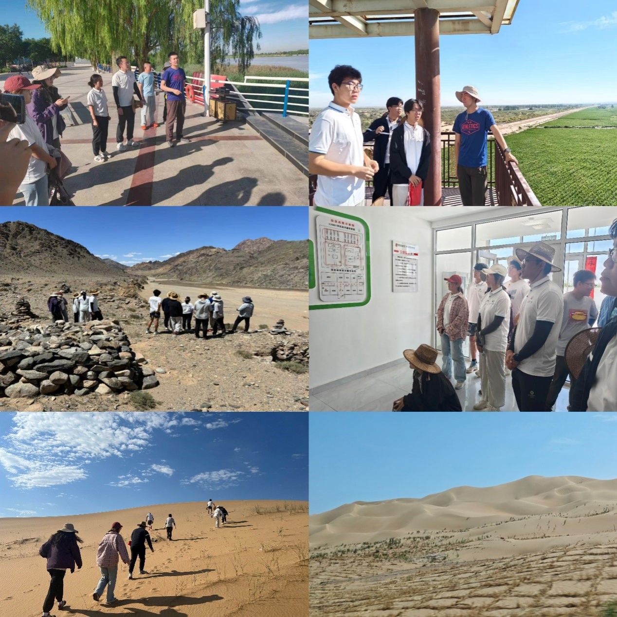 室外开课,明生态保护之要。实践途中,指导教师李金洋就地以光伏治沙项目为例开展生动思政课,提出我国的防沙治沙、荒漠生态治理仍是亟待解决的难题,嘱托实践团队成员要将个人投身于生态治理之中为生态治理贡献力量;李婉歆老师就当地水文地质条件为实践队员们讲解了我国西北旱区典型流域“山地--山间盆地—冲洪积扇—细土平原”的河流与地下水转化模式,并说明黄河的补给使得几字弯地区形成了独特的地下水文过程与生态环境,进一步加深了队员们对荒漠生态治理的理解。