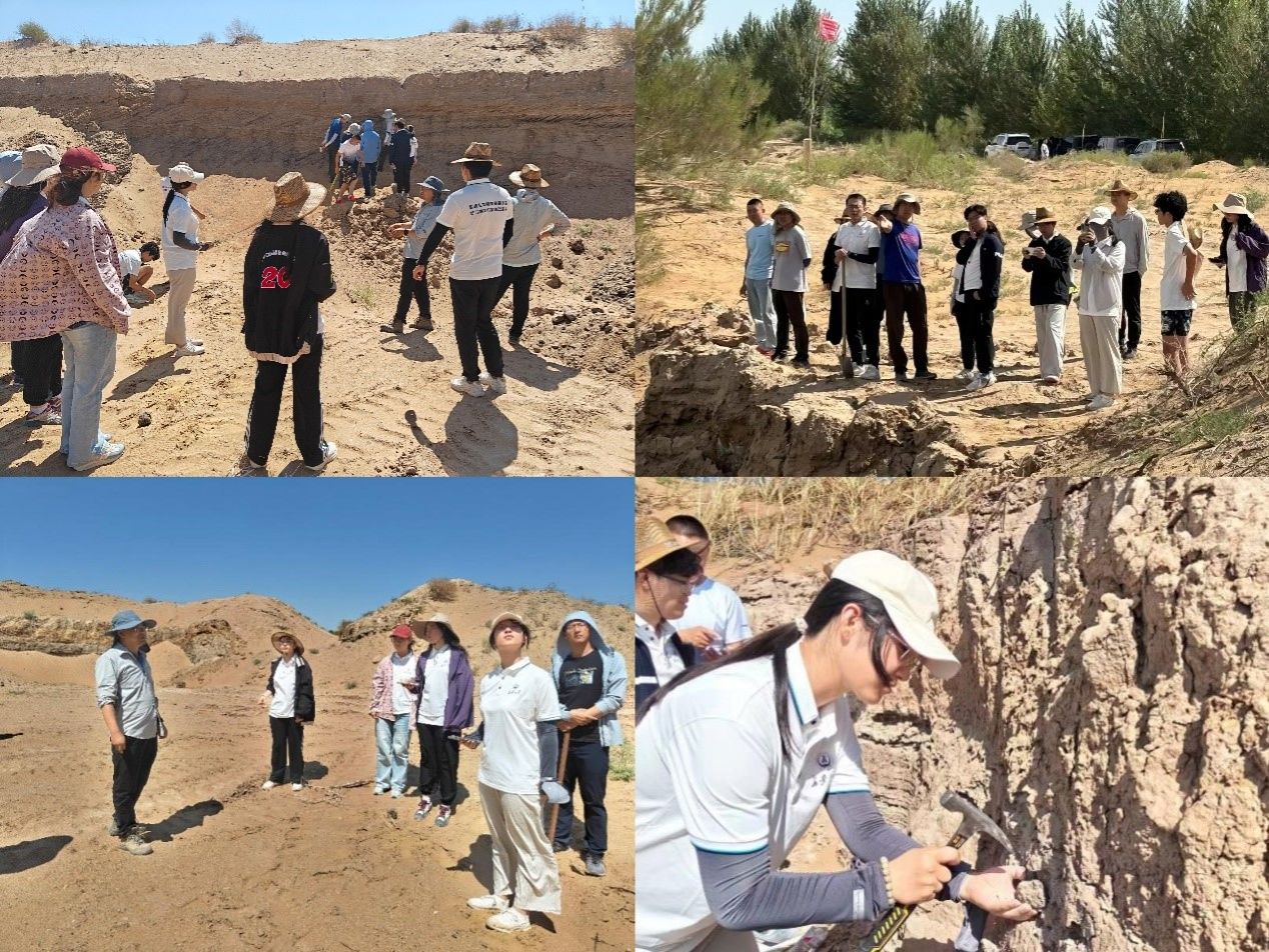 实地勘察,解生态变化之妙。在中国地质调查局呼和浩特自然资源综合调查中心相关负责人带领下,实践团队参观了古湖泊剖面工程与野外地下剖面,项目组负责人边鹏结合生态学与第四纪地质学向实践队员解释了不同土质沉积出现明显分层的原因、详细描述河流湖泊与沙漠的演变过程。实践团队成员也通过采集不同土质样本并从不同的土质层间勘采贝壳,亲身感悟湖泊变沙漠的历史厚重感。