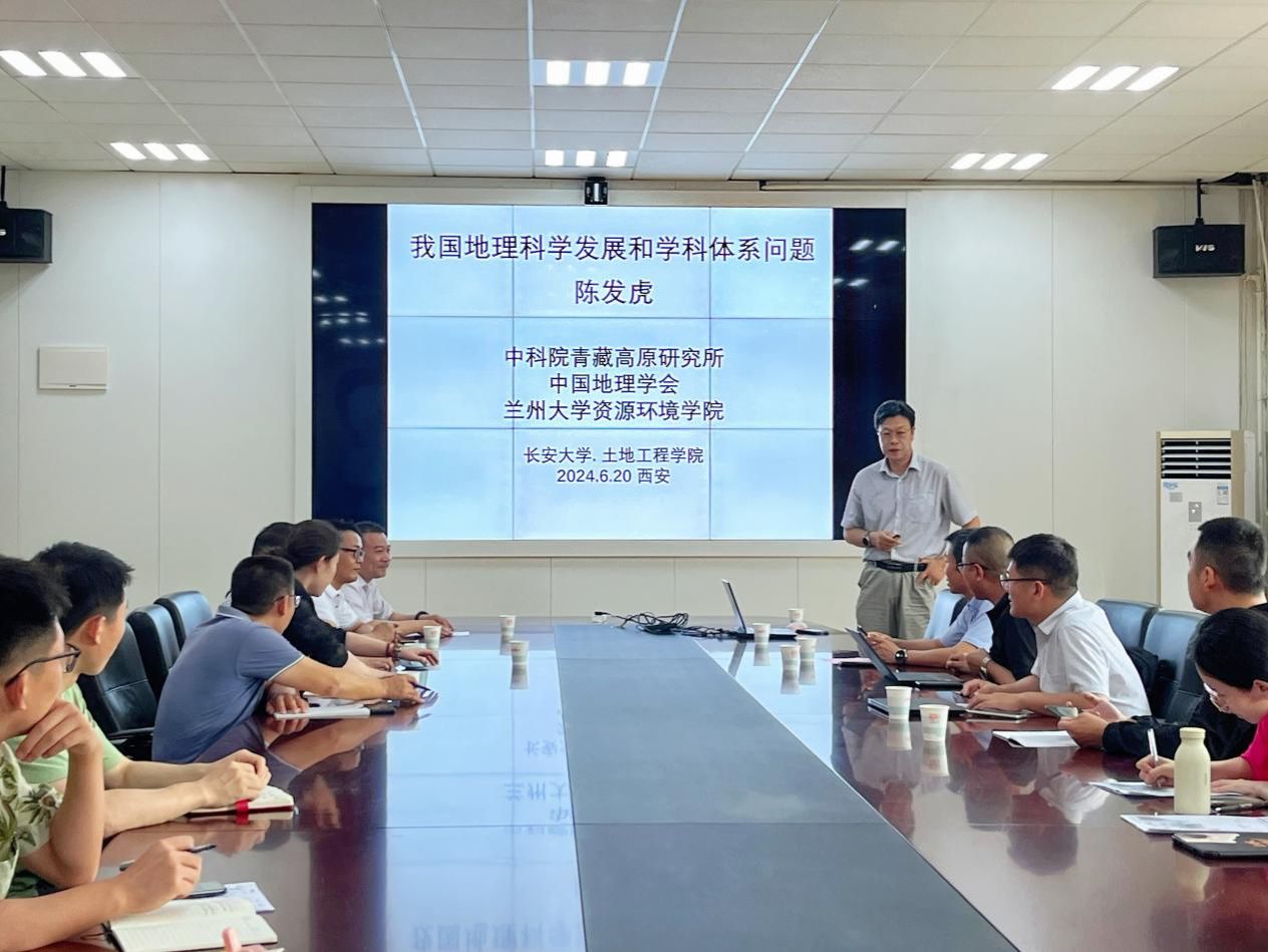 6月20日下午,土地工程学院学术讲座“四方讲堂”第二十二讲以线下的形式在南校区东院举行。此次讲座邀请中国科学院青藏高原研究所陈发虎院士作题为“我国地理科学发展和学科体系问题”的报告,报告由土地工程学院执行院长王刘华主持,学院50余名师生参加讲座。