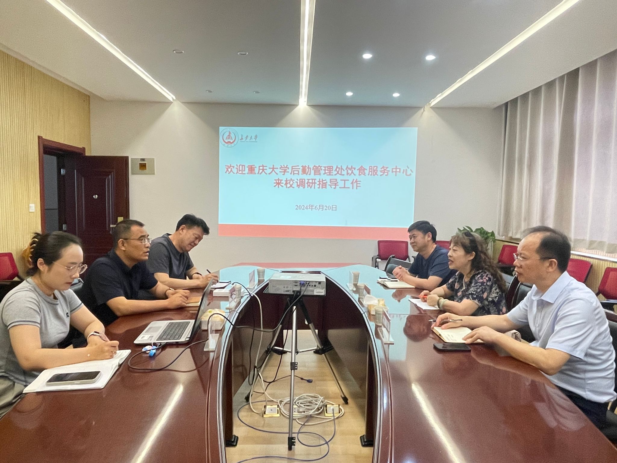 6月20日下午,重庆大学后勤管理处饮食服务中心主任庞金侠、副主任谢儆、食堂经营与管理部部长刘哲军一行3人来bat365调研交流饮食工作,bat365后勤管理处饮食服务中心相关人员陪同。